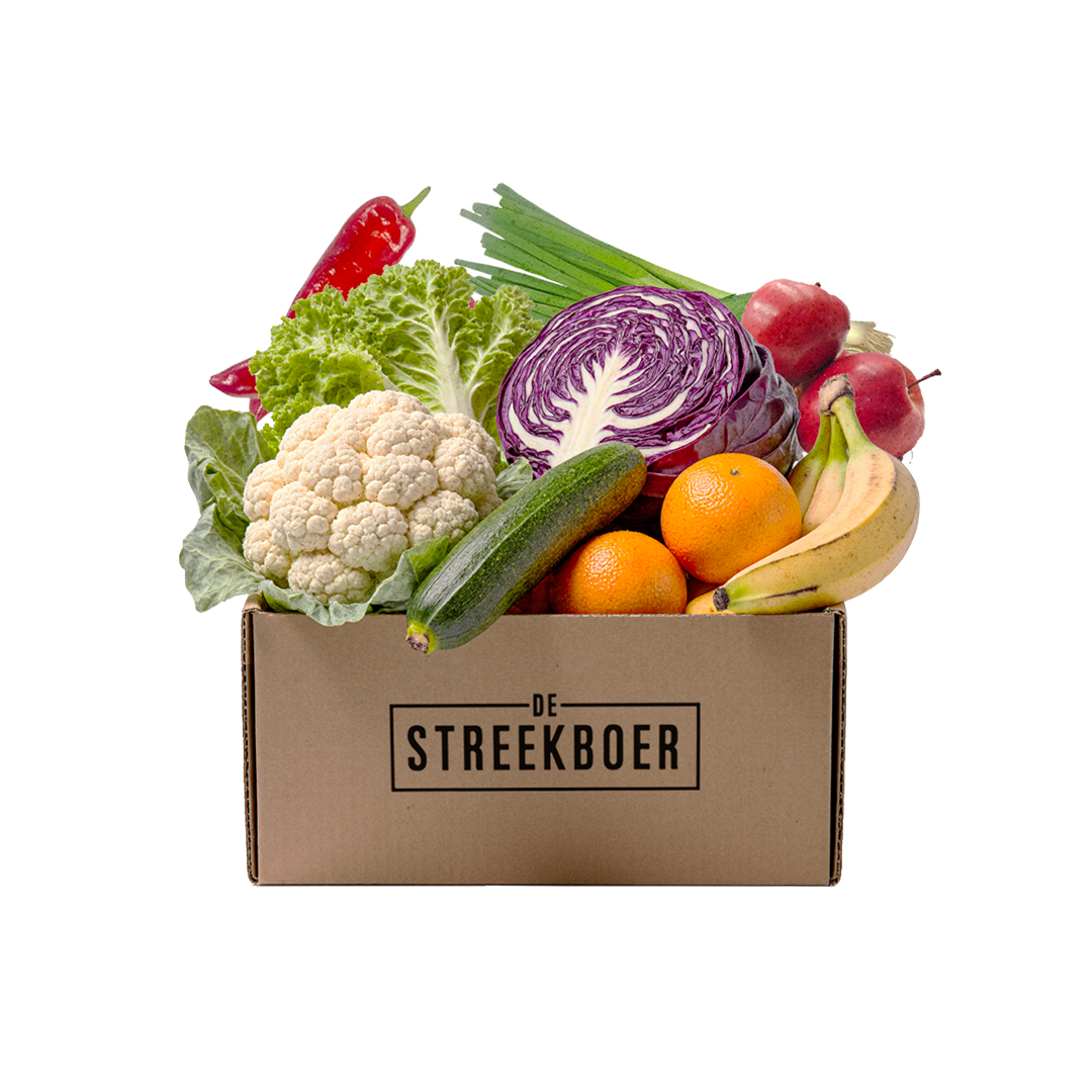 Bestaat jouw huishouden uit meer personen? Kies dan voor een Biologische Streekboerbox aangevuld met een Biologische Fruittas. De inhoud overlapt deels met deze box, de porties zijn groter.
