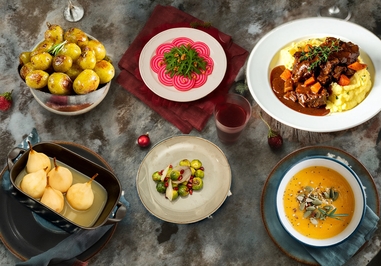 De ingrediënten en recepten voor zeven gerechten gemaakt met de lekkerste producten van onze lokale boeren. Zo zet jij in een handomdraai een overheerlijk kerstmenu op tafel. Het menu heeft vier gangen en daarnaast nog drie extra bijgerechten en is ruim voldoende voor vier persoenen. Je kunt kiezen voor vlees of vega. De ingrediënten zijn voldoende voor vier personen. Uiteraard kun je er ook met twee personen van genieten.